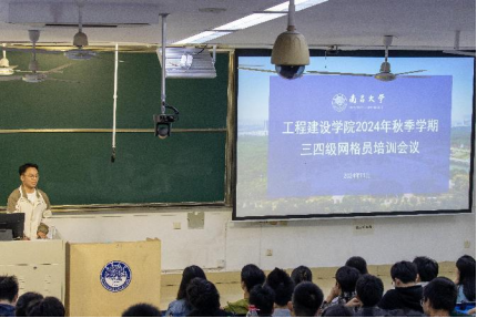 11月13日中午,学院召开2024年秋季学期三四级网格员培训会议,进一步加强学生网格员队伍建设,更好发挥学生网格员在平安校园建设的先锋作用,促进优良学风、班风、舍风建设。学院党委副书记沈松出席会议并作专题培训,全体辅导员,全体本科生、研究生三级网格员,2024级本科生四级网格员共计220余人参加培训。