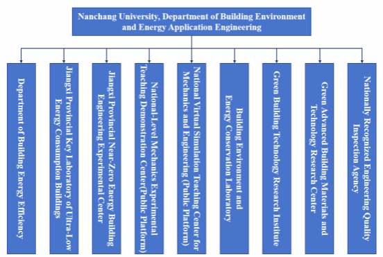 Centred on the theme of ultra-low energy consumption buildings, this program has conducted a series of studies on key issues such as building envelope energy-saving systems, green building materials and their applications, renewable energy utilization, holistic building performance assessment and technologies for creating comfortable and healthy environments. This has led to the preliminary Jiangxi-specific technical framework for ultra-ow energy consumption buildings. The program currently operates teaching and research institutions including the Building Energy Conservation Teaching and Research Office, the Building Environment and Energy Conservation Experimental Center, the Green Building Technology Research Institute, and the Green Advanced Building Materials and Technology Research center. It possesses four provincial-level teaching and research platforms, including the Jiangxi Provincial Key laboratory for Ultra-Low Energy Consumption Buildings and the Jiangxi Provincial Experimental Center for Nearly Zero Energy Building Engineering.