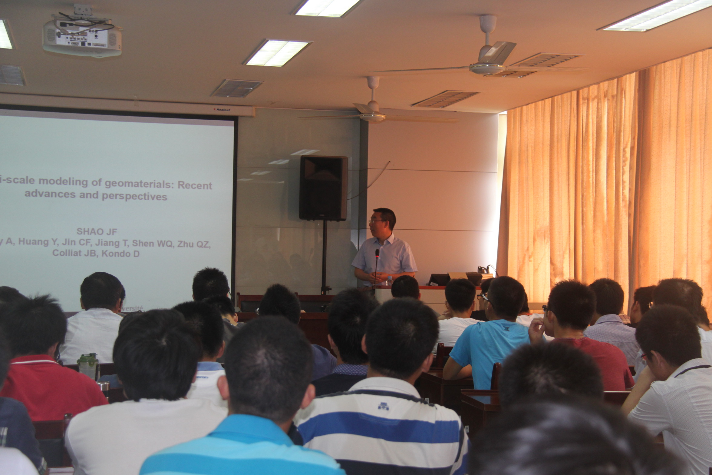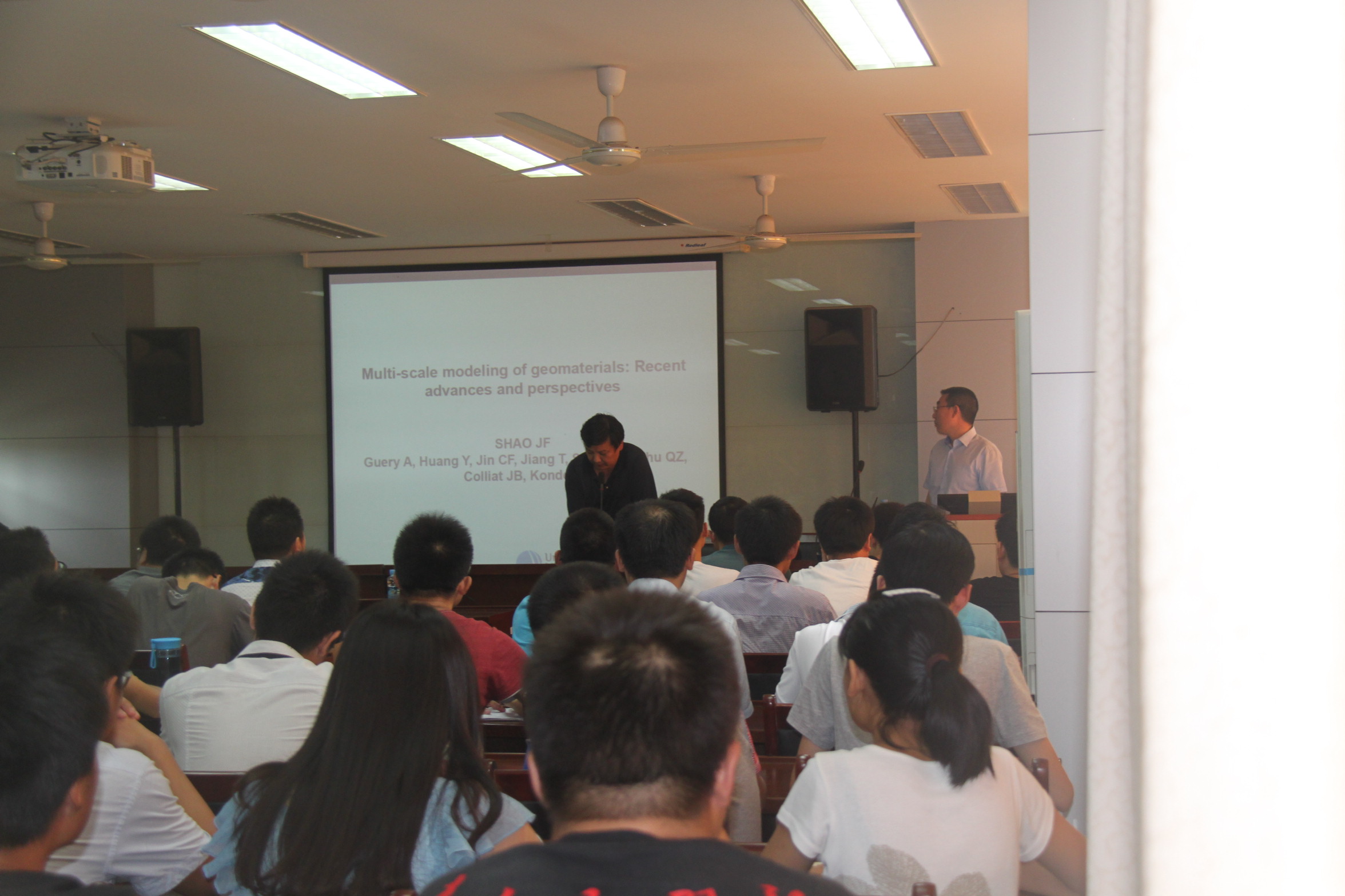 下午2点在学院四楼报告厅,邵建富教授、朱其志教授分别为我院师生做了题为《岩土材料多尺度模拟:研究进展及展望》及《宏细观岩石损伤力学:成果与展望》的学术报告,报告会由学院宋固全院长主持。邵建富、朱其志两位教授均在报告中就各自研究领域的现状、发展及前沿科学问题与大家进行了深入交流与探讨。两位教授严谨治学的态度、治学为乐的风采极大的感染了在座师生,鼓舞了大家勇攀学术高峰的勇气和决心。
