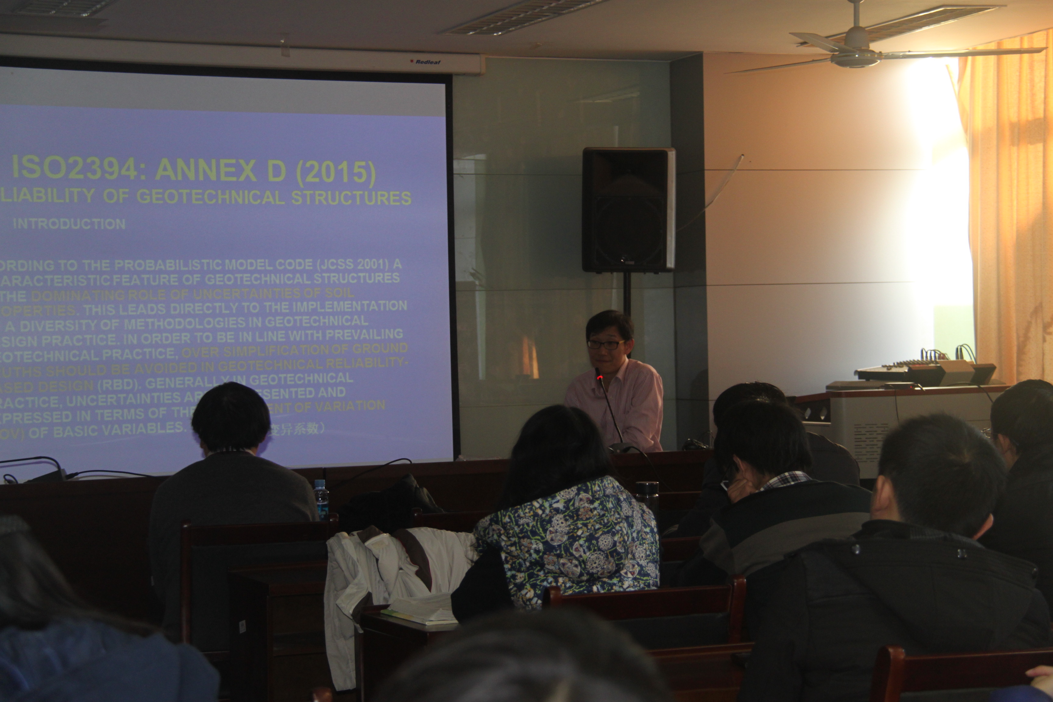2014年12月17日下午,新加坡工程院院士、新加坡国立大学首席教授、国家级人才方国光教授应邀在我院学术报告厅做了题为“Statistical Characterization of Site Investigation Information”的学术报告。报告会由建工学院宋固全院长主持,我院土木、岩土、水利等专业的师生聆听了报告。