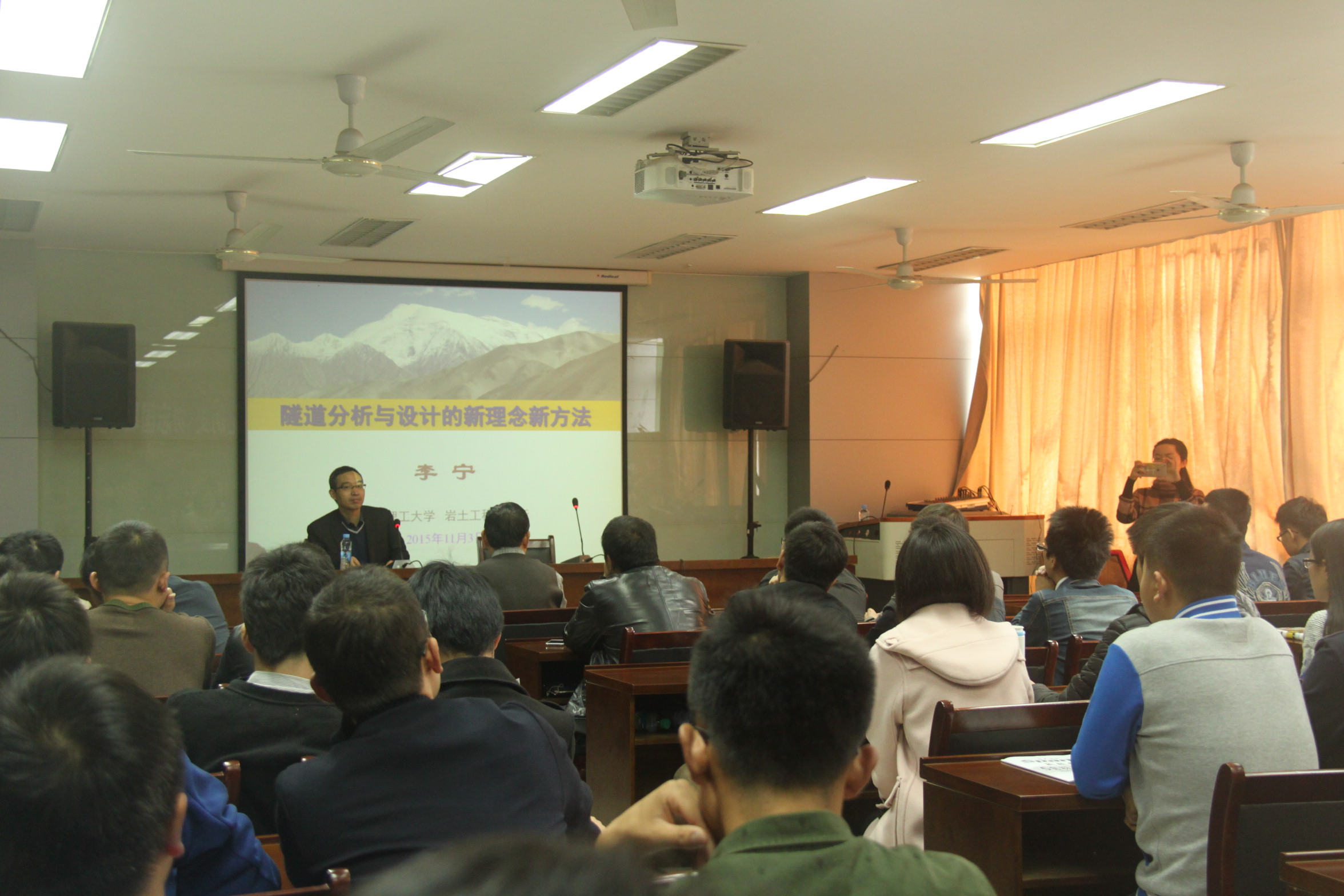 2015年11月3日,全国优秀教师、全国优秀科技工作者、著名岩土力学专家、西安理工大学教授李宁应邀来我院学术交流,并在建A421报告厅为我院师生作了题为《隧道分析与设计的新理念新方法》的学术报告,报告会由建工学院院长熊进刚主持。